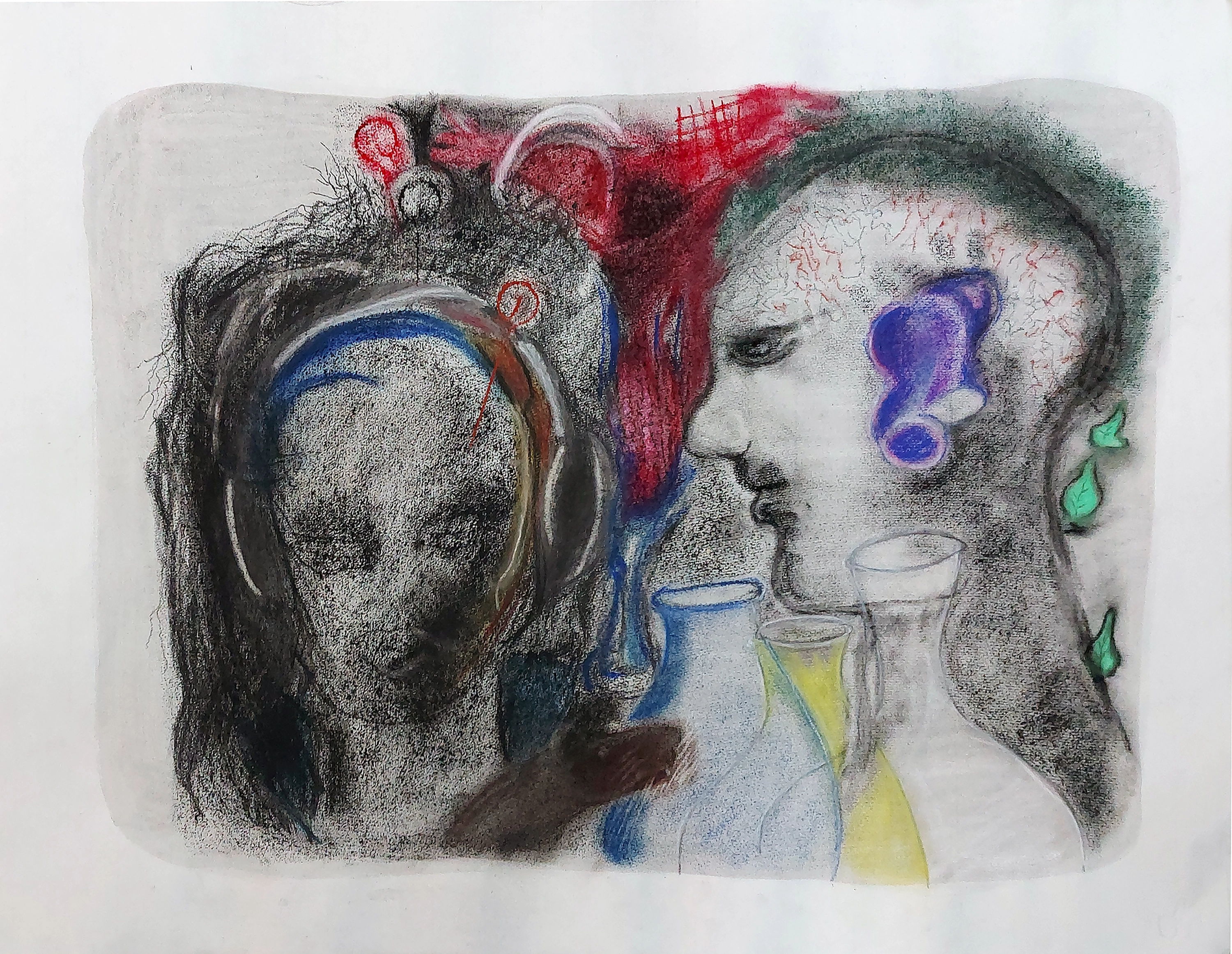 acrylic, pigments, gouache, charcoal